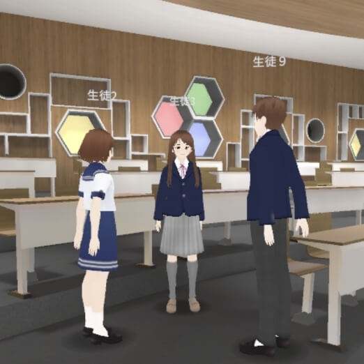 教育メタバースは、教育現場向けに設計されたバーチャル空間での学習・交流を実現するサービスです。3D空間での授業やイベント、遠隔地とのコミュニケーションを可能にし、心理的安全性を保ちながら没入感のある新しい学びのスタイルを提供します。通常授業や不登校支援での活用も可能です。GIGAスクール構想の端末に対応したアプリケーションとなっています。